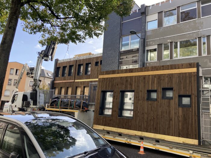 Sur ce chantier, Cruard Charpente assure la réalisation complète des FOB (Façades à Ossature Bois) :