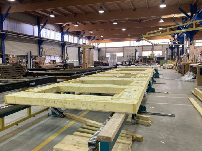 🔸 Pose de l’ossature bois,